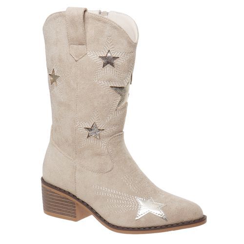 Step into style with the WHITNEY-21 boots by Pierre Dumas Kids, designed to make your little girl shine! Adorned with playful embroidered stars, these soft microsuede boots offer a cozy fit with a cushioned memory foam insole for all-day comfort. The easy zipper closure makes them a breeze to put on, perfect for school days or weekend adventures. With their chic pointed toe and chunky stacked heel, these versatile boots effortlessly elevate any outfit, whether she's dressing up for a family gathering or exploring the playground. Let her express her unique style with every step!